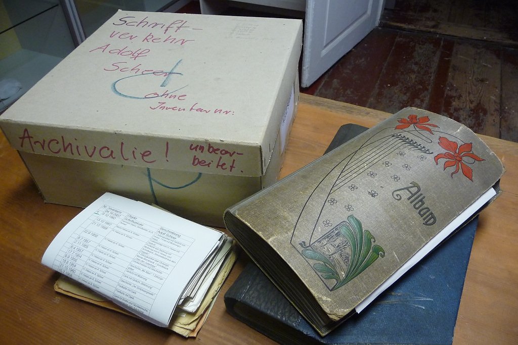 Obwohl ich seit Jahren bemüht bin, den umfänglichen Nachlass Scheers, den er seiner Heimatstadt 1983/84 in mehreren großen Kartons vermachte und der damaligen Leiterin des Meyenburgmuseums, Frau Lappin, übergab, aufzuarbeiten, sind also immer noch Überraschungen möglich.