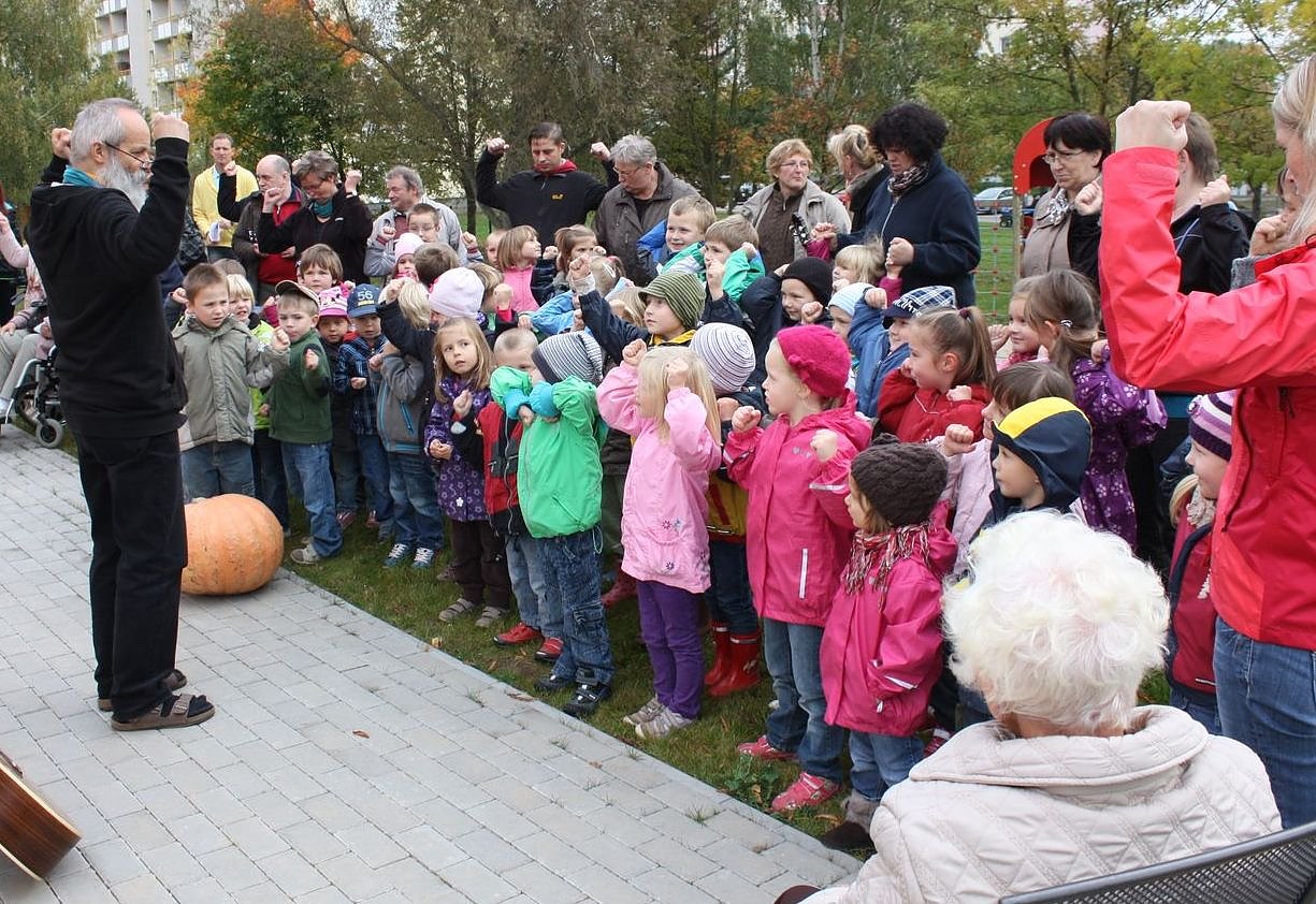 Der Auftakt war um 10 Uhr im Garten mit Pfarrer Peter Kube von der sozialdiakonischen Beratungsstelle, der die Gäste mit Gesang, Spiel und einer Geschichte zum Thema Erntedank begeisterte. Anschließend konnten die Besucher Apfelkuchen backen, Kürbissuppe kochen und Apfelscheiben verfeinern.