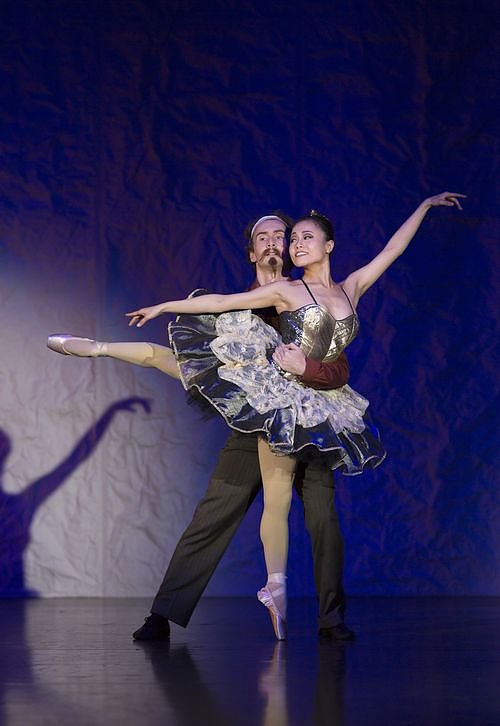 Doch noch Dulcinea: Dem fiebernden Quichote (András Virag) begegnet seine Herzdame (Yuri Hamano)Das Publikum der gestrigen Premiere war mehr als angetan von dieser Darbietung, denn es wollte die Tänzer, den wunderbaren Regisseur, aber auch den hervorragenden Kapellmeister Michael Ellis Ingram, der ein schwungvolles Loh-Orchester leitete, am liebsten gar nicht mehr von der Bühne lassen.