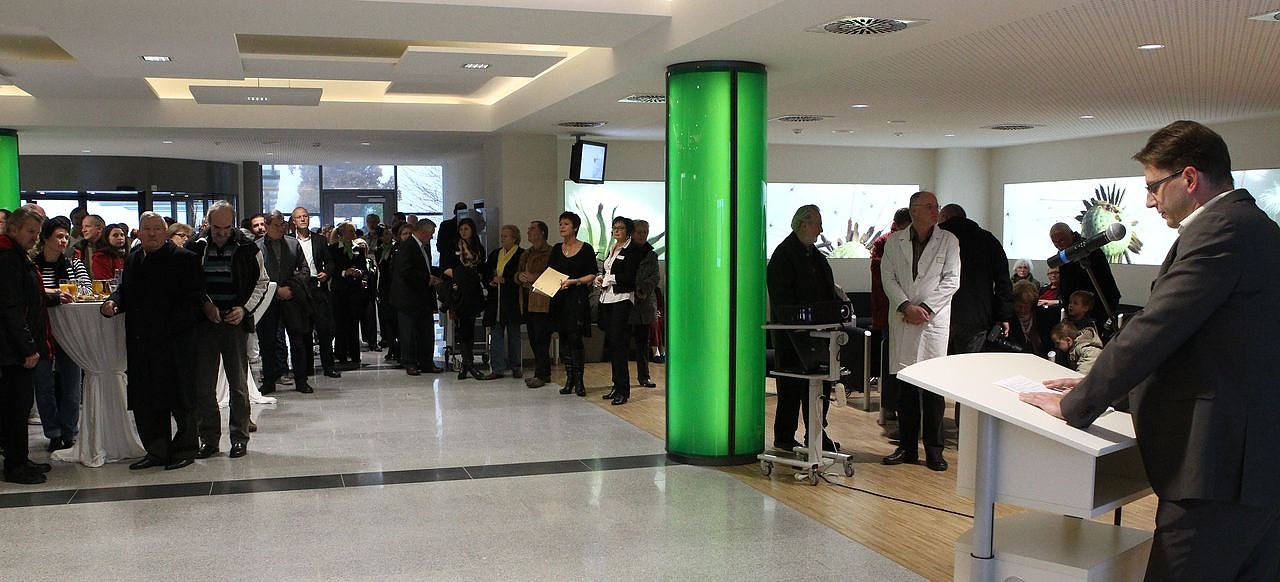 Zu der Einweihung begrüßte der kaufmännische Geschäftsführer des Klinikums, Guido Hage, Vertreter der beiden Gesellschafter, die Aufsichtsräte sowie Mitarbeiter von Firmen, die an der Umsetzung der Architektenpläne gearbeitet hatten. Nun können Mitarbeiter und Patienten die Vorteile einer modernen und flexibel zu organisierenden Aufnahme in Anspruch nehmen. Der Datenschutz der Patienten ist allseits gewährleistet, es herrscht eine angenehme Atmosphäre. Die Mitarbeiter der Aufnahme sind nicht mehr der Zugluft der alten Eingangstür ausgesetzt, sondern erleben den Vorteil einer modernen Drehtür.