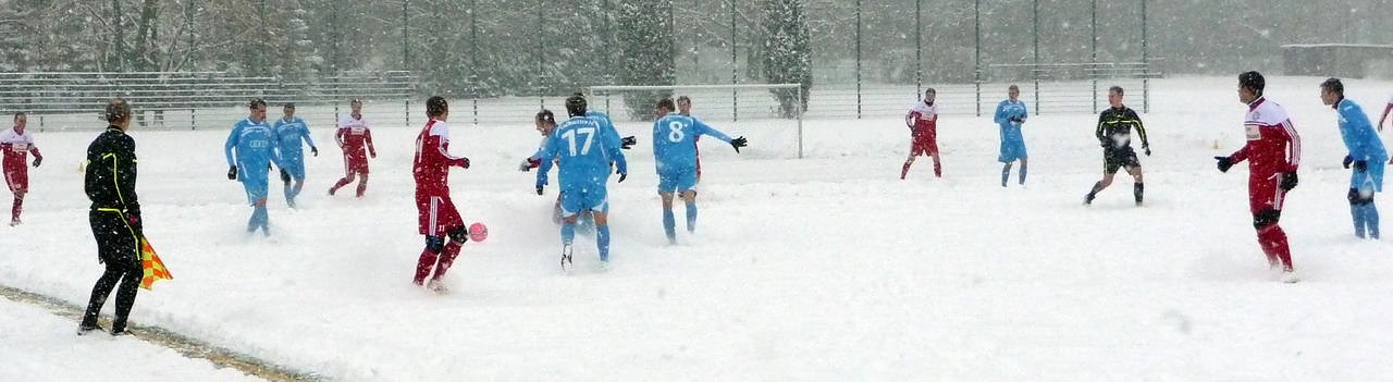 Autor: redZur Beschreibung des Wetters: Nach stundenlangem Schneefall war ein Drittel des Kunstrasenplatzes einigermaßen vom Schnee befreit, der Rest war knöchelhoch bedeckt.