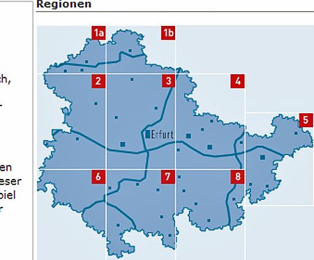 Der Freistaat Thüringen wird nach alter Kolonialmanier einfach mit geraden Strichen auf der Landkarte in Großkreise , genannt Regionen aufgeteilt. Was kümmert es da, welche Gemeinde zu einem ehemaligen Kreis gehört.