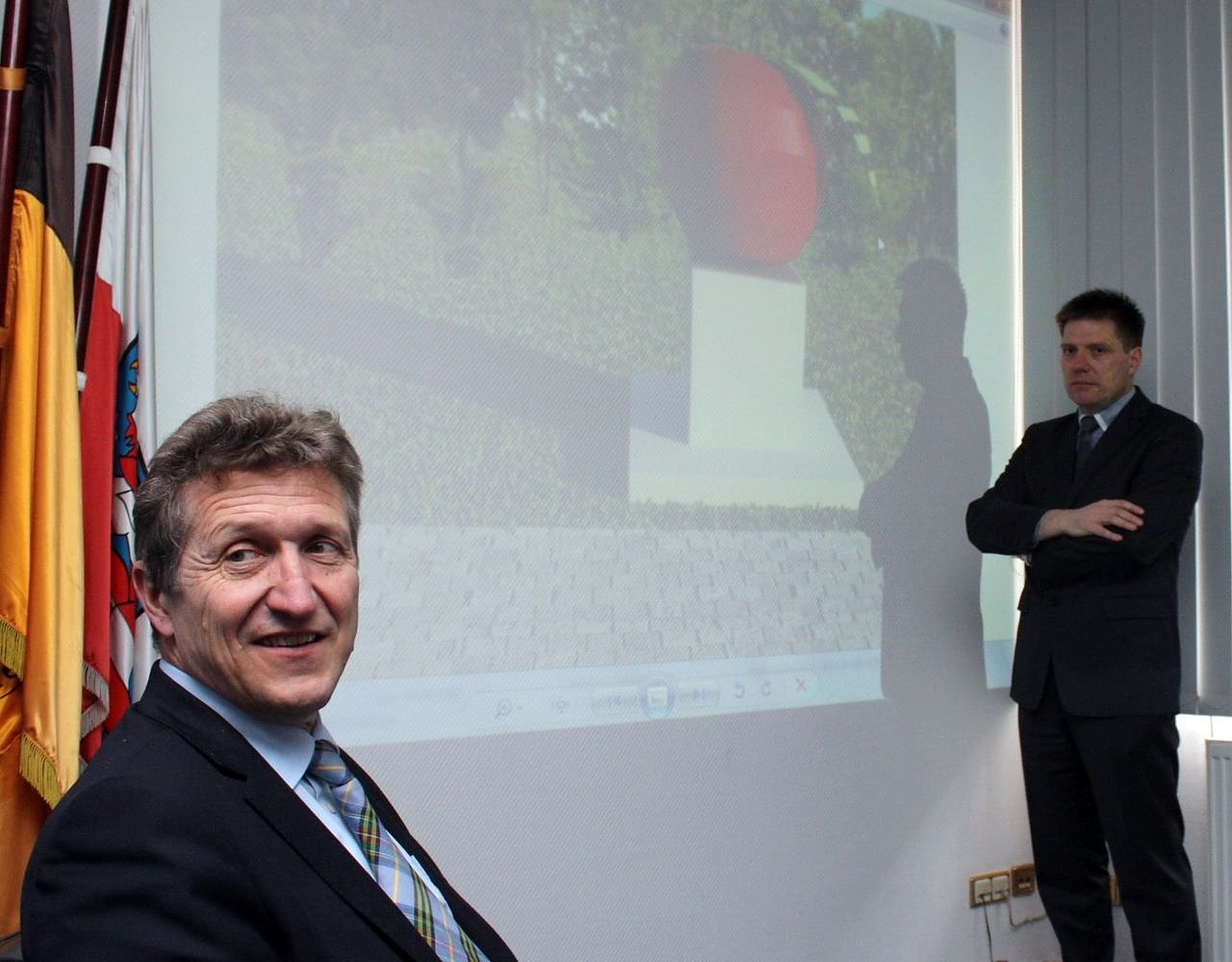 Autor: redRadoslaw Torzynski stellt das Modell seines Geschenks im Rathaus vor.