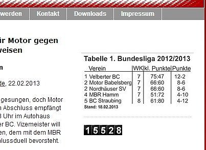 Tabelle vor dem letzten Kampf auf der Babelsberger Homepage (Foto: privat)