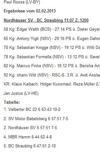 Die Boxsportfreunde wissen, dass am Samstag Babelsberg gegen Velbert mit 11:7 gewonnen hatte. In Nordhausen hatte der NSV dem Boxring Hamm mit 12:5 von der Matte gefegt. Damit ist Nordhausen Vizemeister, was auch der Offizielle des Boxverbandes so sah.
