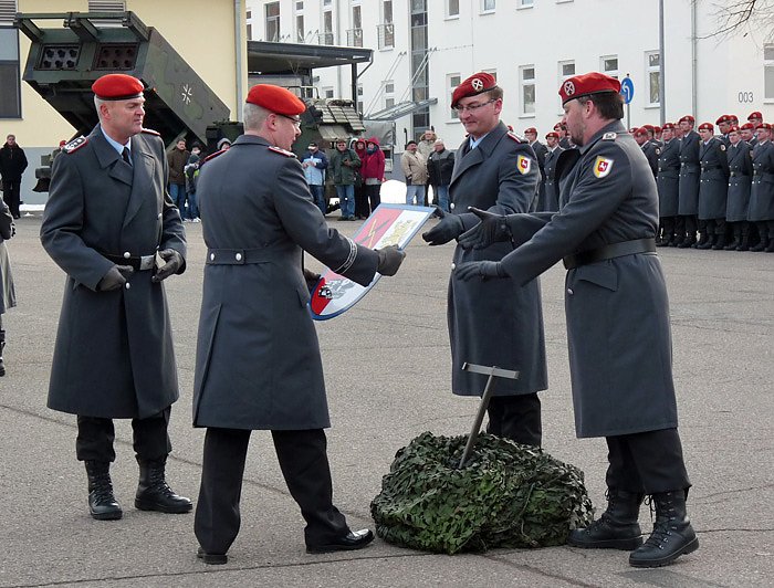 Mit der Übergabe der Wappen der Batterien 2, 3 und 4 an die zukünftigen Kommandeure in den neuen Standorten Weiden, Munster und Idar-Oberstein wurde der Weggang der Soldaten bildlich demonstriert.