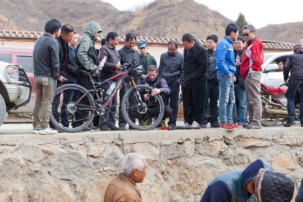 Allerdings: Gestern (28.03.) hatte ich plötzlich einen platten Reifen, den ich dann in einem Dorf geflickt habe. Dort war gerade ein Dorffest in vollem Gange, unsere kleine Gruppe war die Sensation – vor allem mein hochmodernes Rad fand die ungeteilte Bewunderung der fahrradbegeisterten Chinesen.