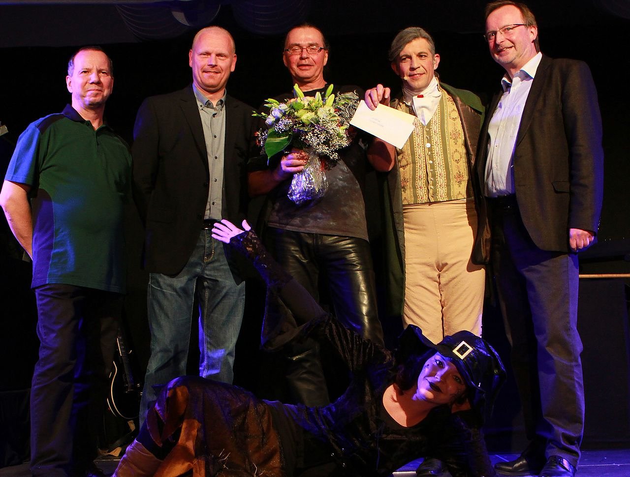 Bevor am vergangenen Samstag Johann Wolfgang von Goethe (gespielt von Ronny Fröde) im gleichnamigen Goethesaal den ersten Akt mit den Worten …drum lasst uns endlich Taten seh‘n! einleiten konnte, verkündete er den Anlass zum Feiern: Andreas Faltin (53 Jahre, Foto Mitte) aus Hannover konnte in der mittlerweile 163. Vorstellung als 40.000 Gast begrüßt werden.