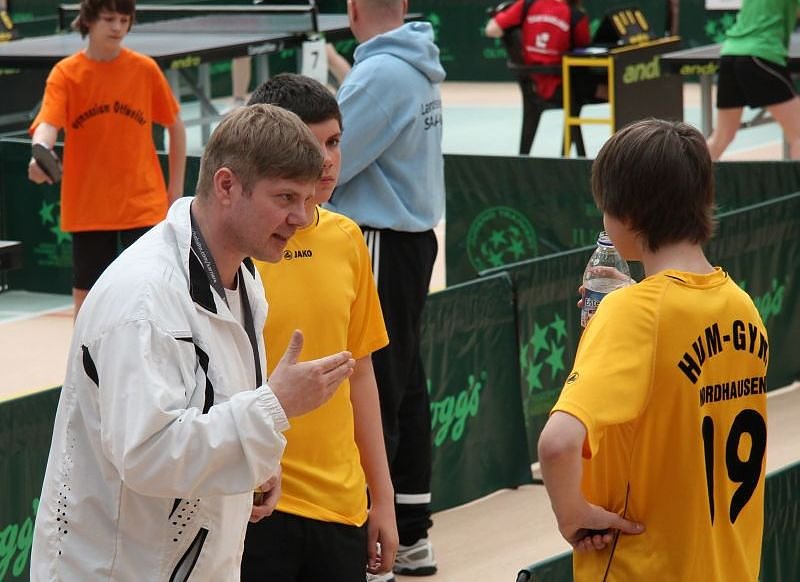 Für die anschließende Partie gegen das Ludwigsgymnasium Köthen (Sachsen-Anhalt) hatten sich die Nordhäuser einiges vorgenommen. Ich möchte, dass sie gegen Sachsen-Anhalt gewinnen, lautete die Marschroute von Scholze. Aus dem Vorhaben wurde nichts, die Nordhäuser unterlagen mit 3:6. Heißer umkämpft war da schon das dritte Gruppenspiel gegen das Gymnasium Süderelbe aus Hamburg. Am Ende mussten sich die Nordhäuser nur knapp mit 4:5 geschlagen geben und belegten in der Abschlusstabelle der Gruppe B den letzten Rang. So geht es für die Mannschaft am Donnerstag in den Platzierungsspielen um die Plätze neun bis 16.