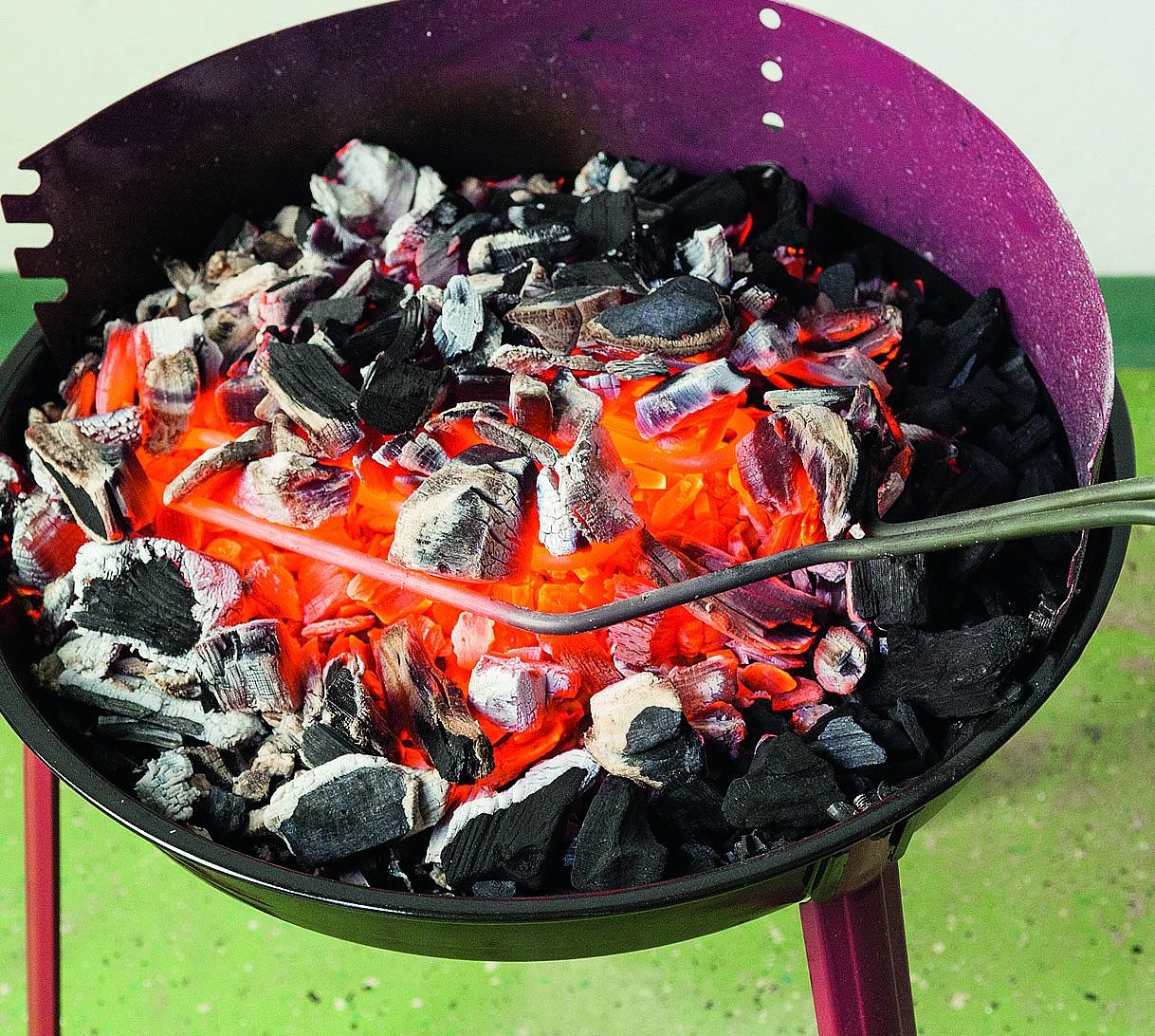 Elektro-Grillanzünder: Die glühende Gabel heizt den Holzkohlen rauch- und geruchsfrei ein.
