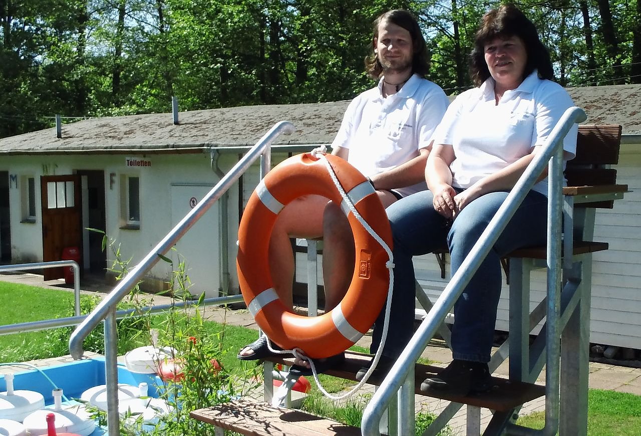 Auch der Kiosk am Waldbad hat ab sofort geöffnet. Die Muth & Hofmann GbR hat zukünftig die Betreibung des Kiosk übernommen. Erster Badegast war der Bademeister Roland Gerlach selbst. Er hat die Wassertemperatur bereits getestet. Die Wasserqualität wurde von zwei Instituten getestet und die Ergebnisse sind hervorragend. Sonnen schirme und Sonnenliegen stehen zum Ausleihen bereit.