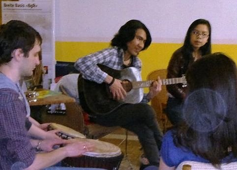 Die KURZE MEILE / der Verein Schrankenlos ergänzen die kreative Entfaltung mit musischen Darbietung: Beste Unterhaltung werden junge Menschen aus verschiedenen Ländern darbieten. Sehr unterhaltsamer Gesang, handgemacht mit Gitarre, ein wenig Percussion, vielleicht ein paar Flöten....und voller Elan vorgetragen – das beflügelt die Fantasie und regt an. WER EIN INSTRUMENT MITBRINGT, kann in die Session einstimmen.