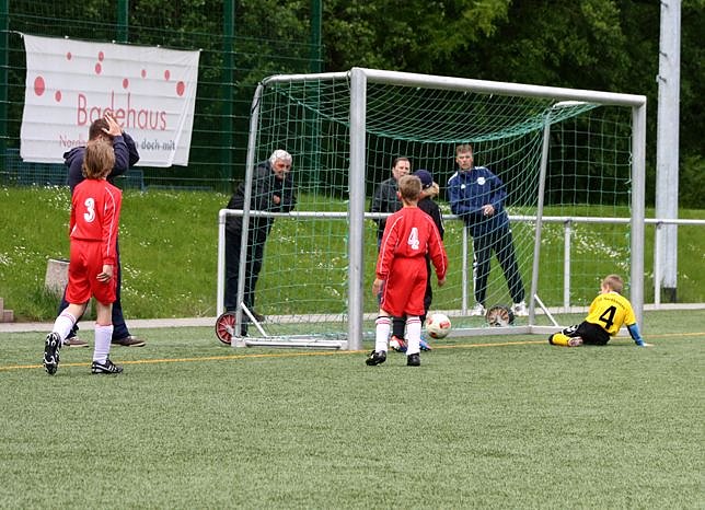 Nach dem Wiederanpfiff ist es dann Nils Kruse, der unsere Führung auf 7 Tore ausbaut. Der Gastgeber macht dort weiter, wo er kurz zuvor aufgehört hatte. Die Jungs spielen oft mit Köpfchen. So lässt z.B. der "große" Nils in 27. Spielminute den Ball schön zum besser postieren Lio-Nils Heller durch. Der jüngste Spieler im schwarz-gelben Dress stellt sich clever an und schiebt die Kugel aus kurzer Distanz zum 8:0 ein.
