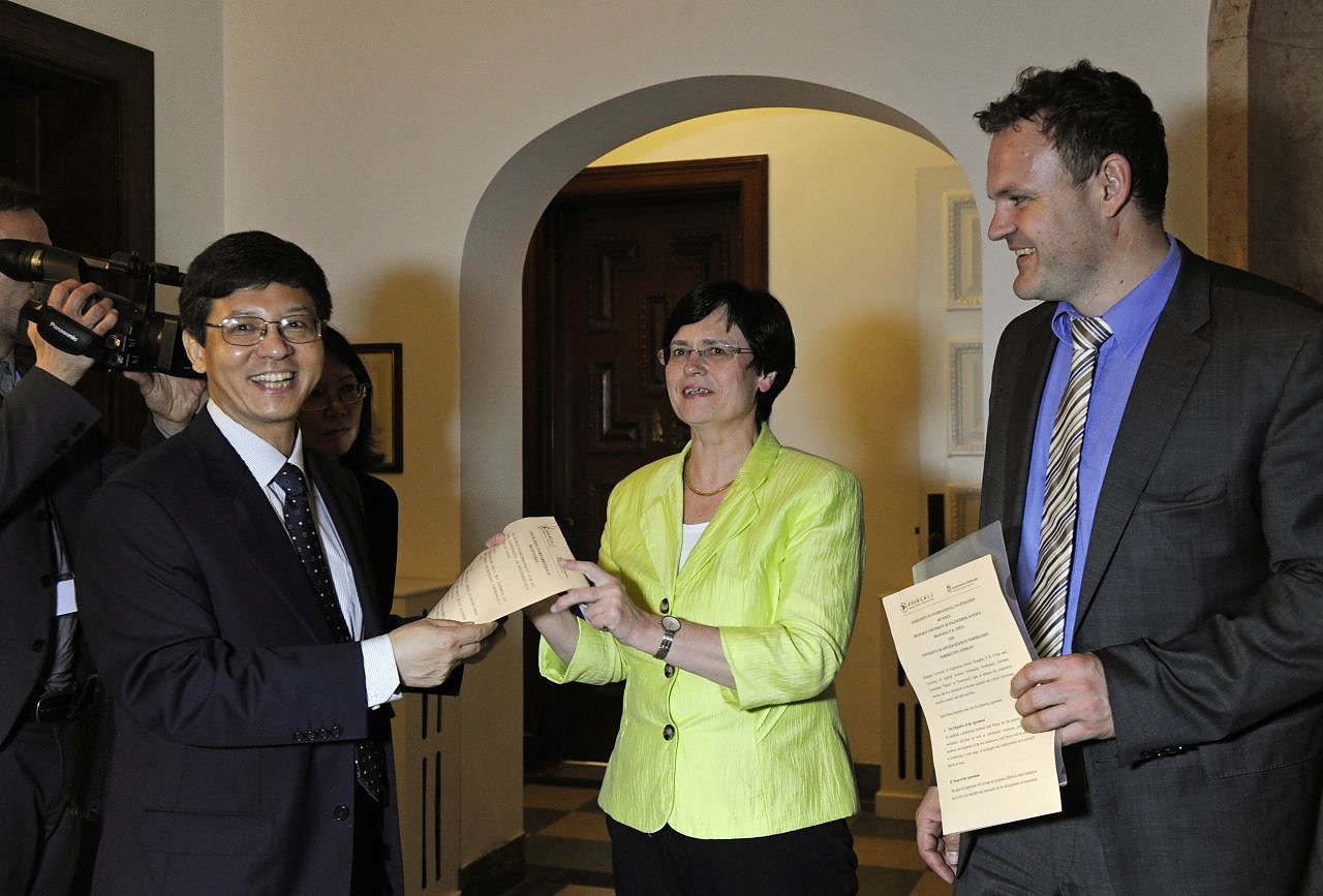 Autor: redFHN-Präsident Prof. Dr. Jörg Wagner unterzeichnet einen Kooperationsvertrag mit der Shanghai University of Engineering Science während einer Delegationsreise nach China unter Leitung der Thüringer Ministerpräsidentin Christine Lieberknecht