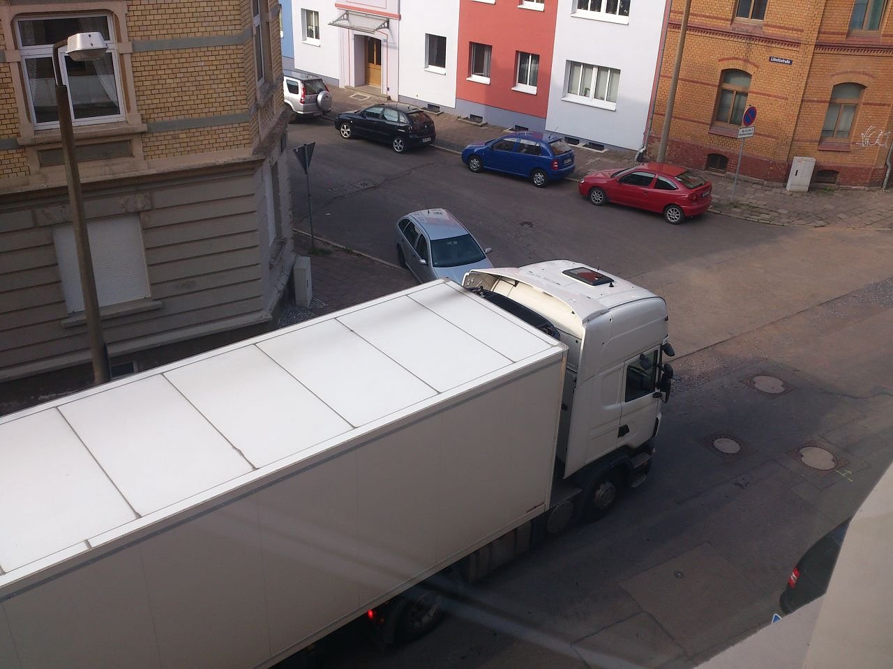 Autor: redUnd wenn dann noch passend dazu ein verirrter 40 Tonner nicht in die Löbnitzstraße einbiegen kann, weil es keine Schilder gibt, die ihn davor warnen, dass es für Fahrzeuge seines Ausmaßes keine Wendemöglichkeit gibt oder die Möglichkeit überhaupt wo anders lang zu fahren, dann ist das Chaos am Samstagmorgen perfekt. Und das ist nicht das erste Mal, dass sich hier ein solcher Brummi verirrt und rückwärts schieben muss. Ein einfaches Schild hätte geholfen, doch waren die werten Herren wohl zu geizig. Das würde ja sicher extra kosten.