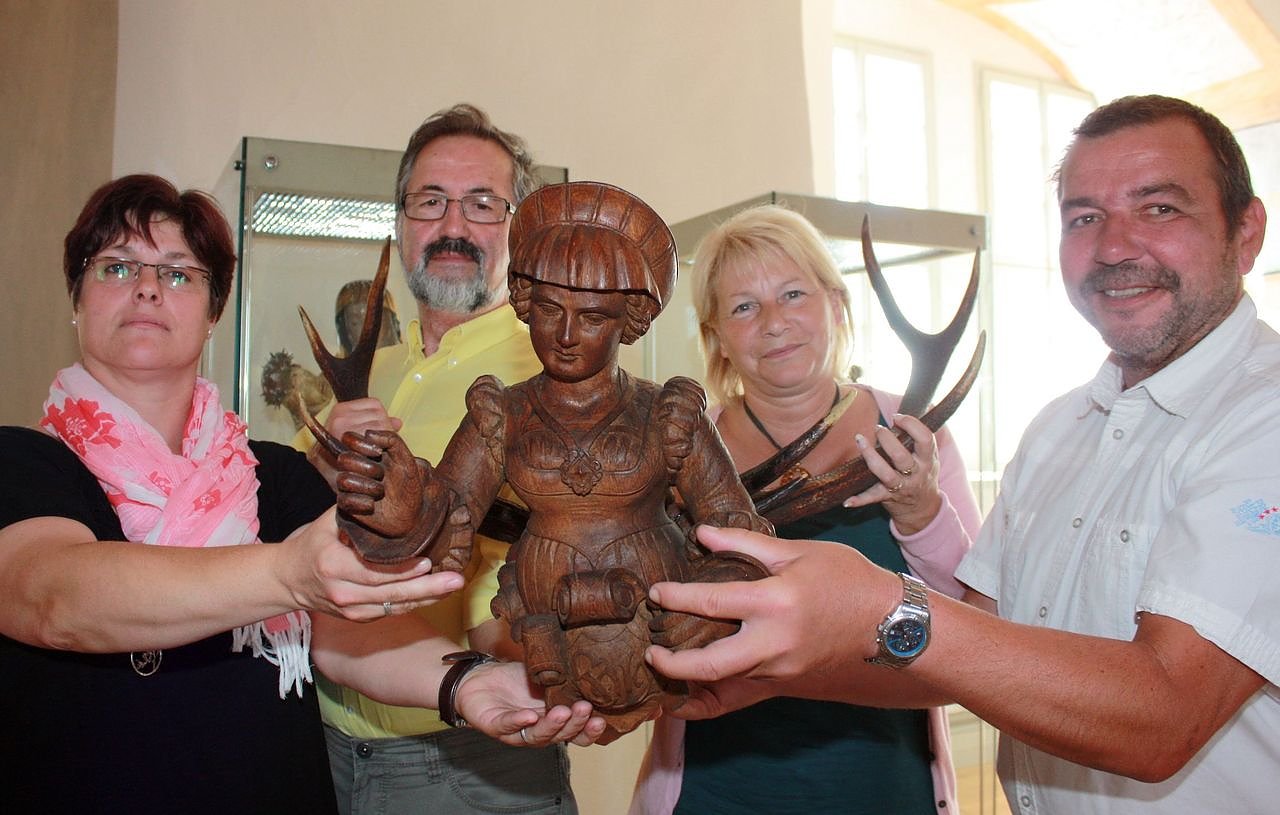 Museumsmitarbeiterin Astrid Lautenschläger, Vorsitzender des Vereins Interessengemeinschaft Schloss Heringen, Dr. Klaus Moser, Hannelore Haase und Maik Schröter