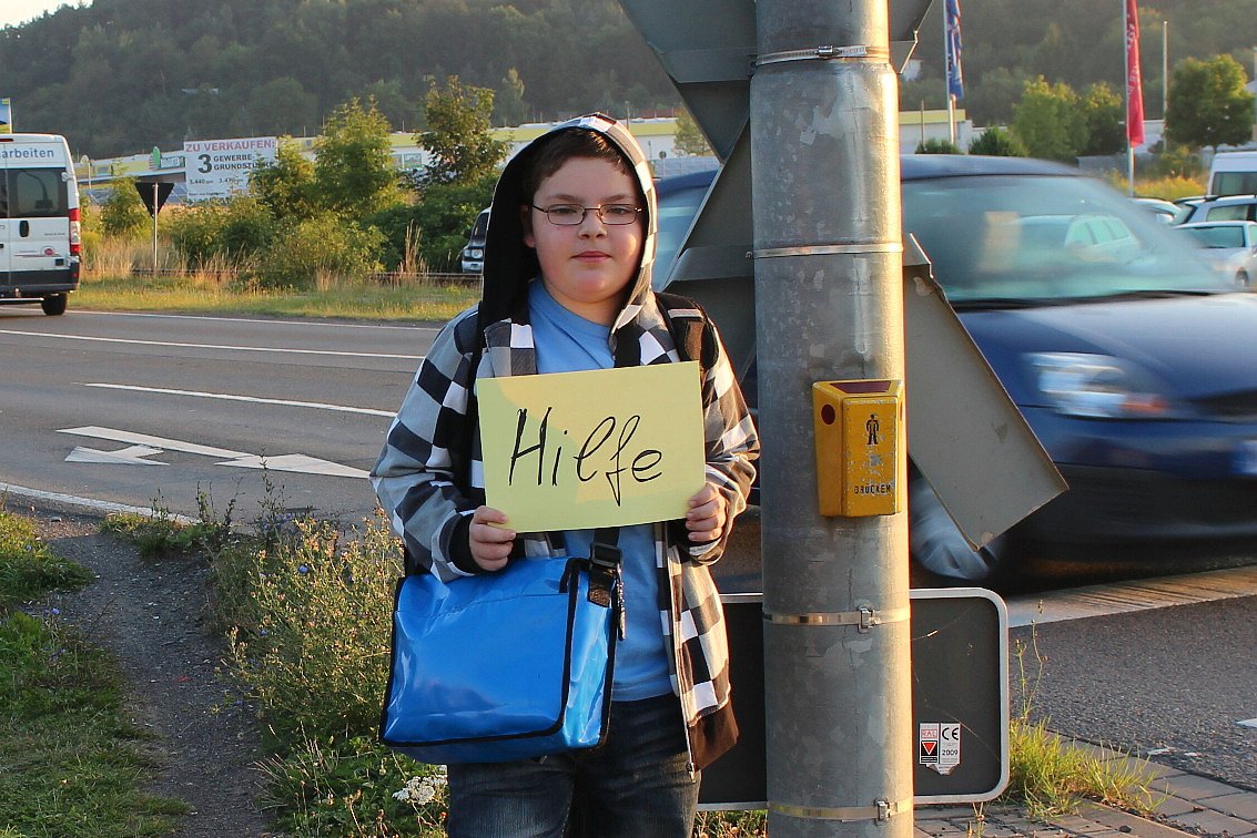 Sein täglicher Schulweg führt über die B4, Marcus muss die Bundesstraße an der Kreuzung zum Herkules Niedersachswerfen überqueren. Dort ist zum Glück eine Ampel mit Fußgängerbedarfsschaltung, die ihm am Nachmittag hilft über die Straße zu kommen...