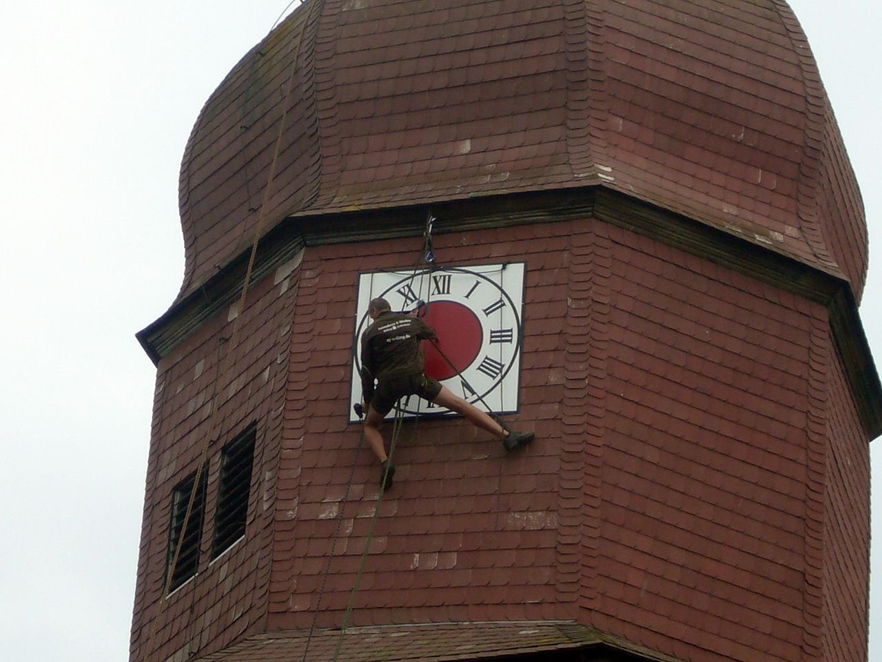 Mit der Firma Thüringer Turmuhren – und Glockenservice von Steffen Willing aus Gräfenhain fanden wir ein Unternehmen, das uns nicht nur ein neues Ziffernblatt auf ca. 25 m Höhe in Alpintechnik montierte, sondern auch die dazu gehörende Mechanik fachgerecht überholte und wartete.