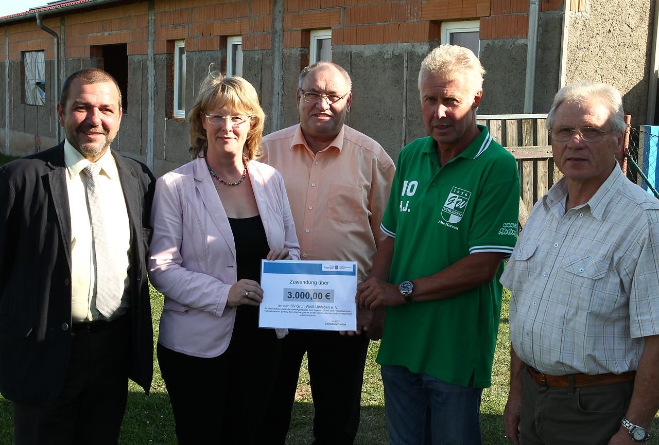 Nach dem Millionen-Bescheid am Mittag in Nordhausen, übergab Staatssekretärin Inge Klaan (CDU) am Nachmittag den Lottomittelbescheid an Vereinschef Hans-Joachim Junker. Mit dem Geld soll ein ehemaliger LPG-Stall zu einer Mehrzweckhalle umgebaut werden. Die kann dann von den zehn Vereinen im Ort für diverse Festivitäten genutzt werden. Im Jahr 2015, dem 1050. Geburtstag des jetzigen Ortsteils der Landgemeinde Heringen, soll die Einweihung erfolgen, weiß Ortsteilbürgermeister Fritz Lehmann zu berichten.