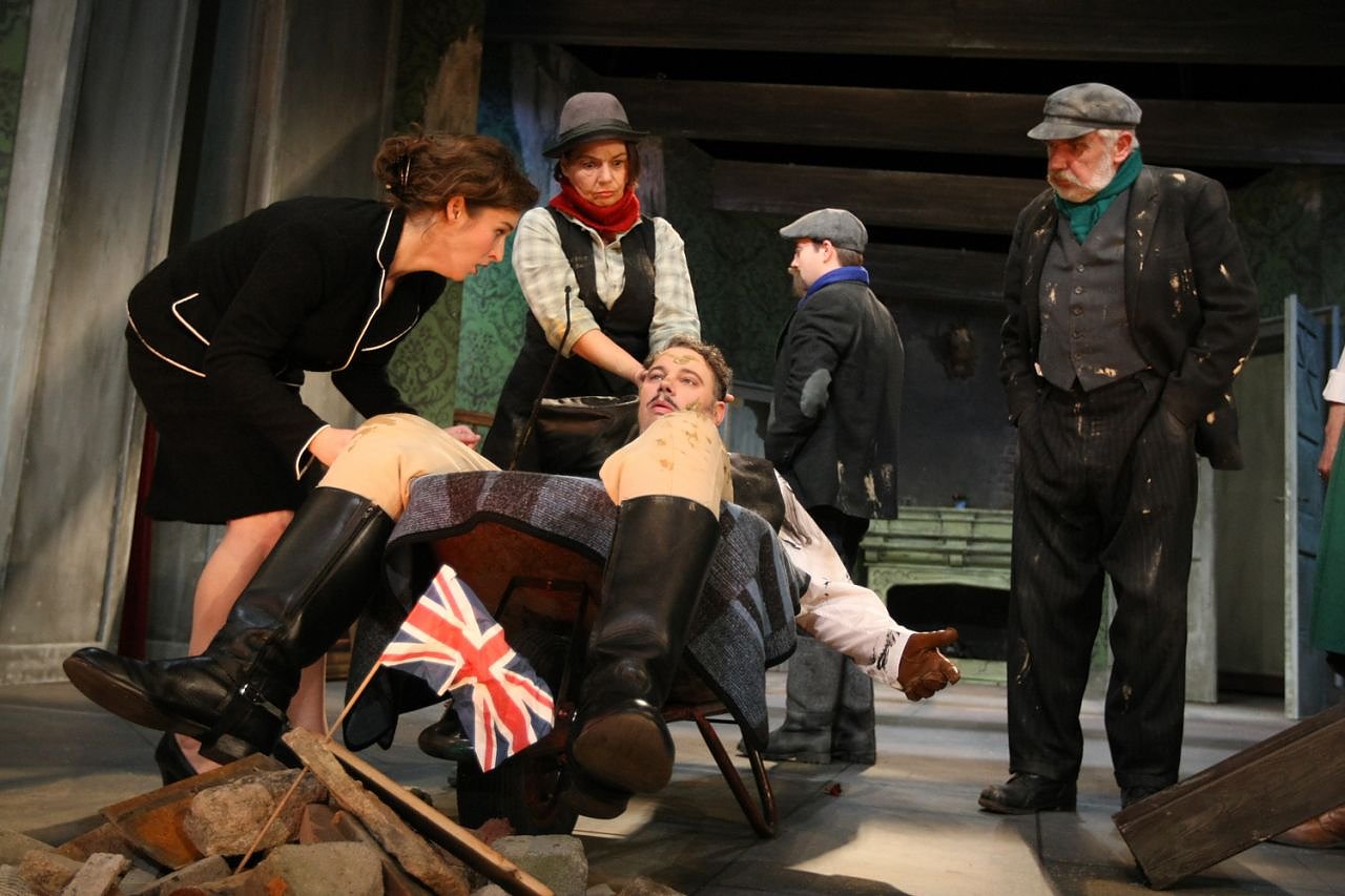In der Regie von Herbert Olschok sind Matthias Winde und Markus Seidensticker als die zwei englischen Hausbesitzer zu erleben, Laura Göttner und Miriam Gronau spielen ihre wechselhaften Geliebten. Unter Jörg Schlüter als Maurervorarbeiter O’Killigain hantieren Hans Burkia, Benjamin Griebel und Verena Blankenburg, unterstützt von Johannes Arpe, Horst Damm, Charlotte Ronas und Ute Schmidt. Die Ausstattung übernahm Alexander Martynow, gesungen wird nach der musikalischen Einstudierung von Thomas Voigt.