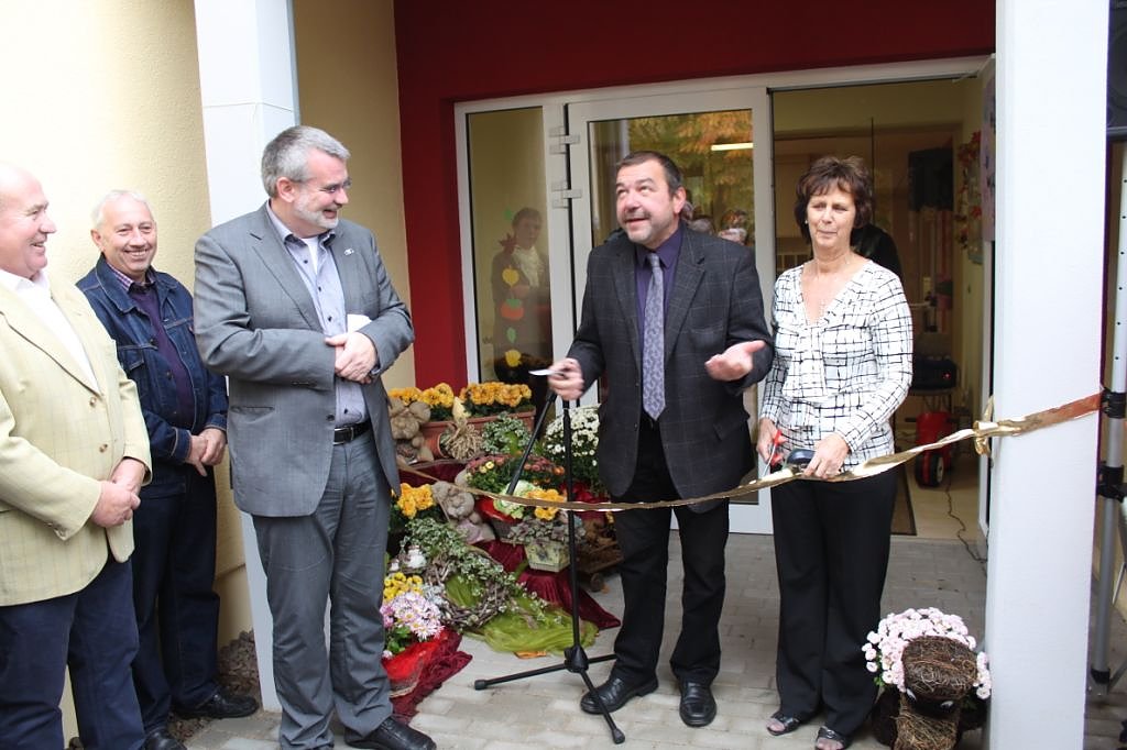 Nach einem kurzen Programm der Kinder der Einrichtung nutzte Schröter das Podium um einige Details zu der Erweiterung der Einrichtung zu nennen. Insgesamt wurden in dem Bauvorhaben seit 2012 über 500.000 Euro investiert. Möglich wurde das durch die Förderung mit Bundesmitteln zur Umsetzung des geänderten Betreuungsgesetzes.