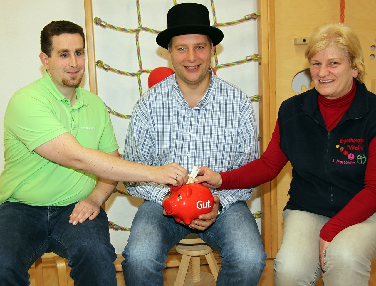 Jetzt konnten Ergotherapeutin Sigrid Marcordes und Physiotherapeut Silvio Krebs Tom Landsiedel, dem Vorsitzenden des Zappelini-Trägervereins studio44, die stolze Spende von 255 Euro überreichen. Wir freuen uns sehr über diese große Unterstützung und bedanken uns dafür. Wir werden das Geld in unseren Kostümfundus investieren, so Tom Landsiedel.
