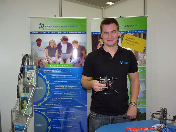 Und so können wir, so Hochwind, auch in diesem Jahr neue Unternehmen wie: die Firma Voigt & Schweizer aus Heldrungen, die Firma Strickrodt & Söhne GmbH aus Rockstedt, das Unternehmen Schachtbau aus Nordhausen, die ASCO Sprachschule aus Coburg, das Hotel Romantischer Winkel aus Bad Sachsa als Aussteller begrüßen. (Herzlich Willkommen). Nicht das erste Mal dabei, die Fachhochschule Nordhausen mit ihrer Mini-Flugmaschine, die heute allerdings nicht starten durfte.