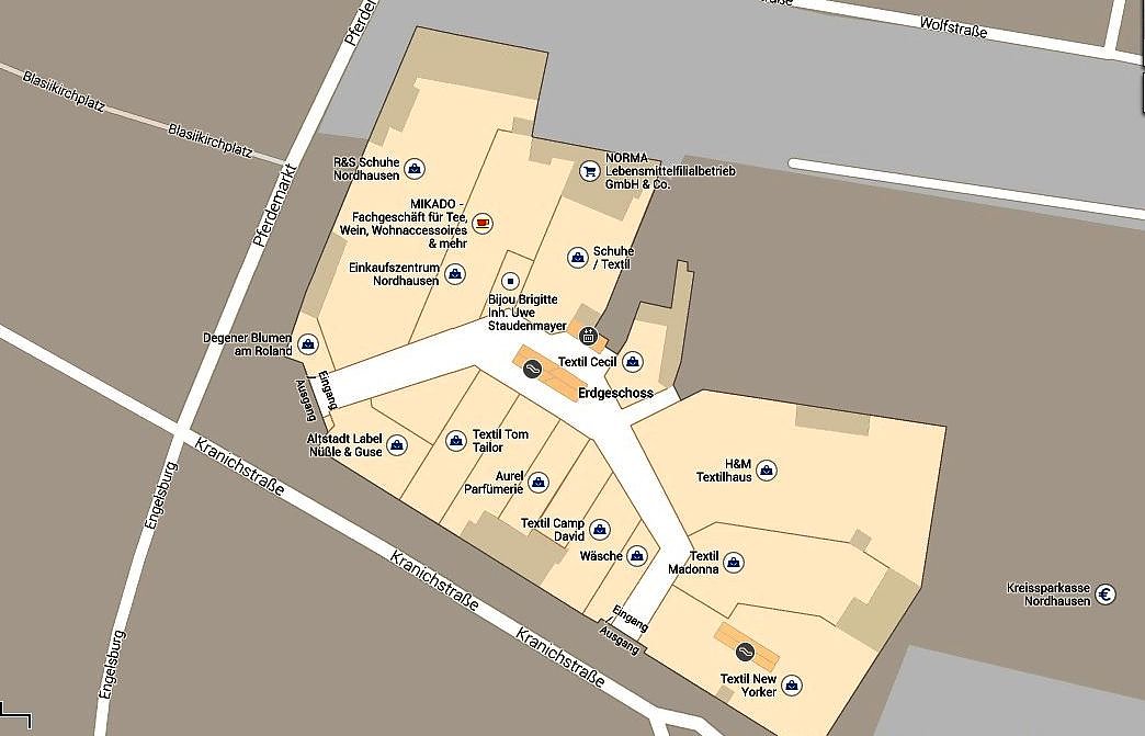 Soll nicht Rewe in dieses Kaufhaus? auf dem Plan steht Norma. Oder geht Rewe in die zweite Etage?