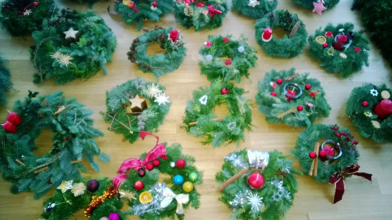 Zu dieser Aktion lädt der Förderverein der Evangelischen Grundschule Nordhausen ein und bindet mit Eltern und Großeltern, sowie den Schulkindern Kränze und Girlanden. Diese schmücken in der Adventszeit das Schulhaus und die Klassenräume.