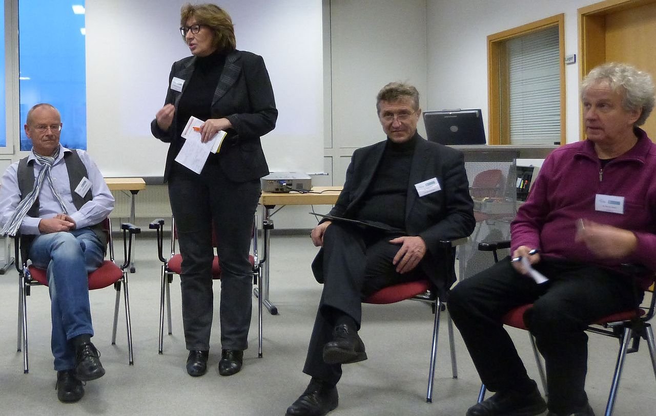Podiumsgespräch Internationale Jugendbegegnungen – eine bunte Vielfalt – A. Weigel, Vorstand des JugendSozialwerk Nordhausen, Oberbürgermeister Dr. Klaus Zeh, Dr. Werner Müller, Geschäftsführer von transfer Köln sowie Moderatorin Christiane Brandenburger.