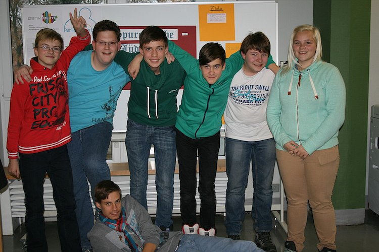 Zum Gedenken an die Reichspogromnacht 1938 nahmen die teilnehmenden Schüler gemeinsam mit der Lehrerin Frau Schröder an der Kranzniederlegung am 09.11.2013 bei der Gedenkstätte Zum Gedenken an die Jüdische Gemeinde 1591-1938 in Ellrich teil. Besonders stolz waren die Jugendlichen darüber, dass der Bürgermeister Herr Ehrhold ihnen nach der Veranstaltung sein Redeskript zur Verfügung stellte.