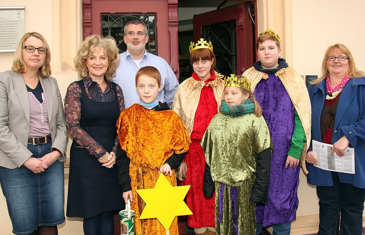 So können immer mehr Kinder dort zur Schule gehen, sagte Cornelia Luziw, die die Sternsinger seit vielen Jahren begleitet. Der dienstälteste Sternsinger in der Runde war Lukas, der schon als Vorschulkind angefangen hat und nun zum neunten Mal mitsingt. Eine Premiere war es dagegen für Laura und Lucas, der den Segen an die Tür des Landratsamtes geklebt hat.