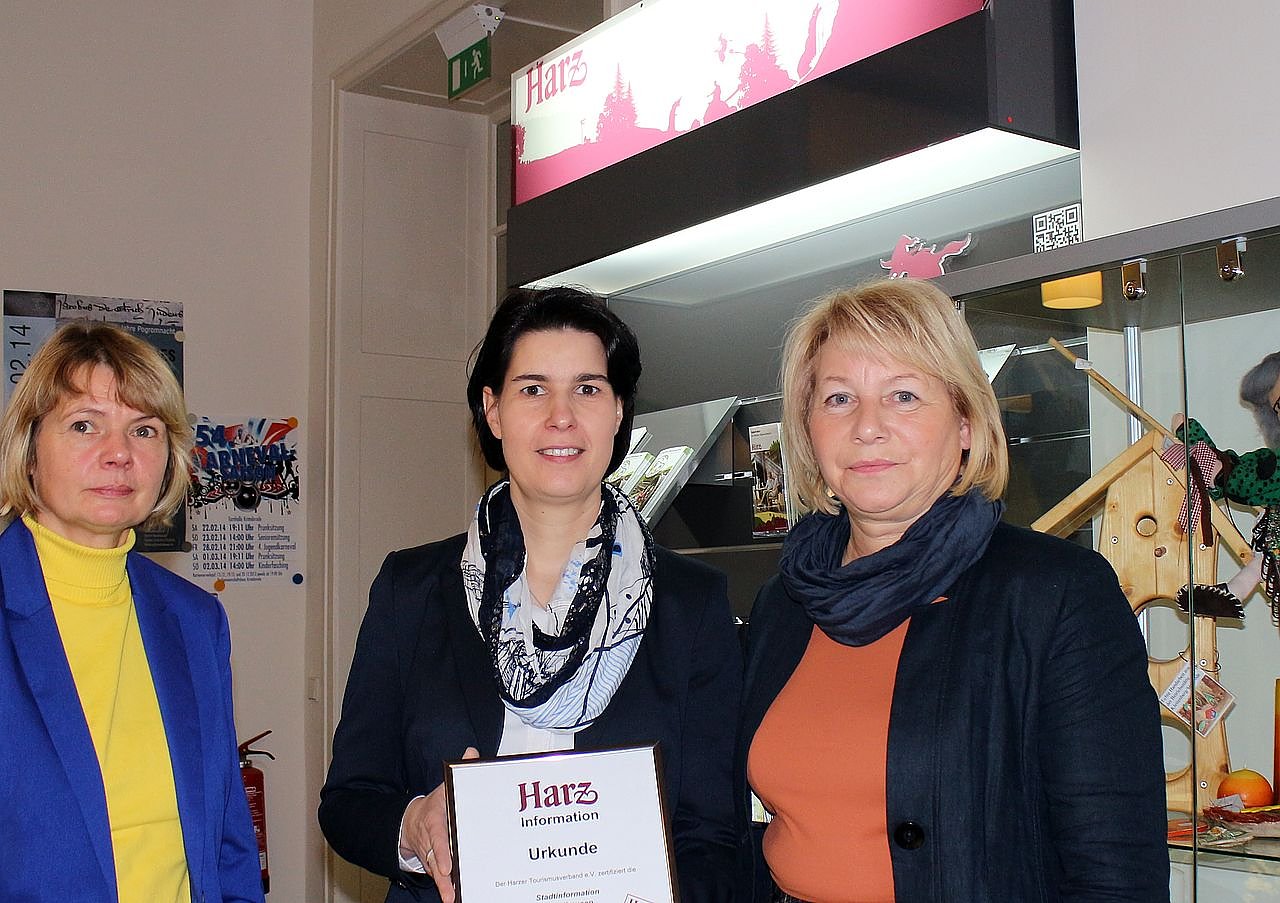 Ende 2013 erhielten bereits die Informationen in Bad Lauterberg, Quedlinburg, Goslar und Hahnenklee, Osterode, Braunlage und Halberstadt diese Auszeichnung. Heute übergab Carola Schmidt, die Geschäftsführerin des Harzer Tourismusverbandes die Urkunde an die zuständige Dezernentin der Nordhäuser Stadtverwaltung, Hannelore Haase.