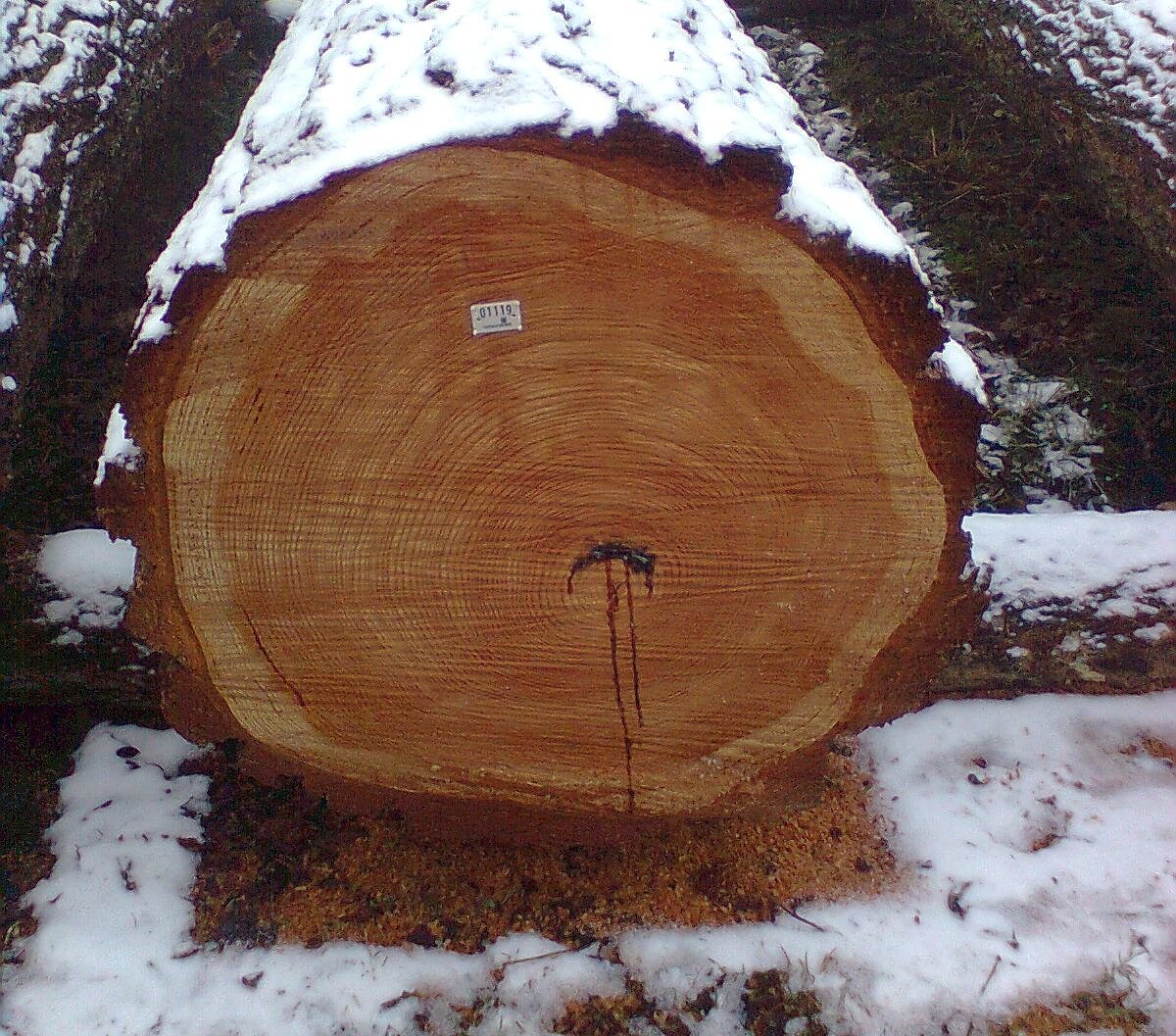 Die teuerste Eiche aus dem Südharz aus der Tiefenbach bei Wollersleben. Nicht die Stärke gab hier den Ausschlag, sondern ein enger Jahrringbau und ein fehlerfreier Stammmantel waren wichtiger.