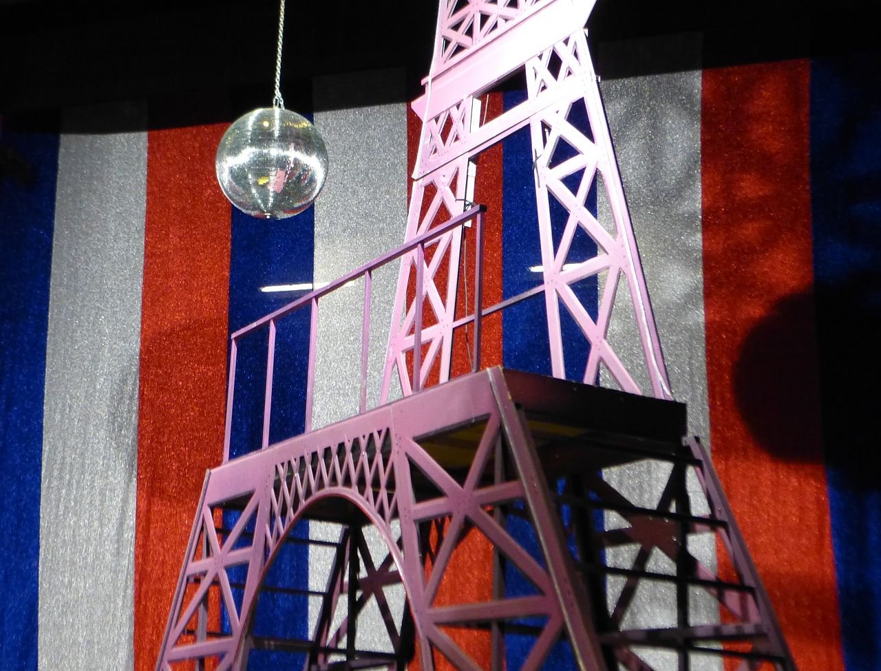 Der glitzernde Aushang in den Farben der Trikolore und die Nachbildung des Eiffelturms werden jetzt noch ins richtige Licht gesetzt.