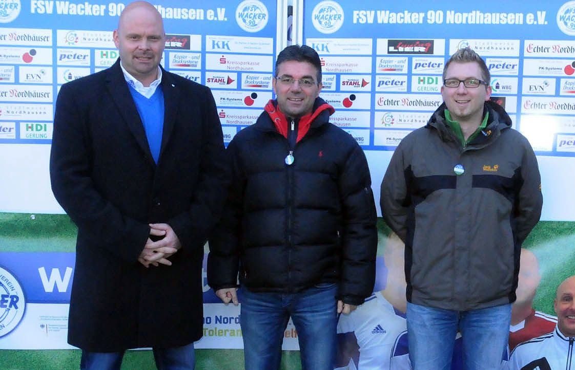 Wacker-Präsident Nico Kleofas und die Sponsoren Andreas und Christoph Blanke