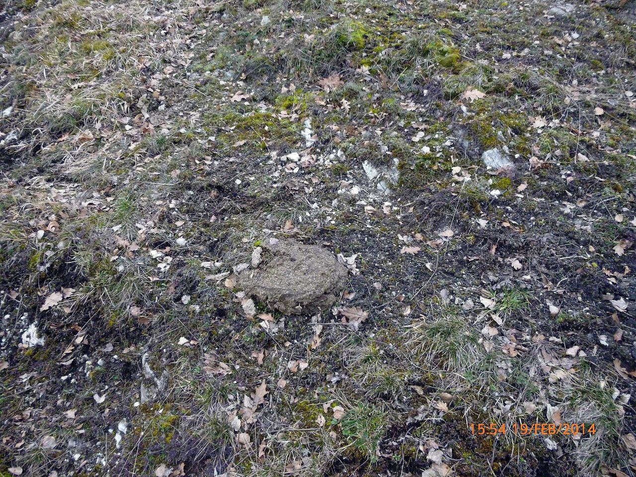 Ein Kuhfladen inmitten einer ehemals für die Bunde Erdflechtengesellschaft geeigneten Fläche. Gerade an erhöhten Geländepunkten, auf denen auch die bedrohten Erdflechten siedeln, setzen die Rinder ihre Fladen. Letztere bleiben oft über Monate liegen.