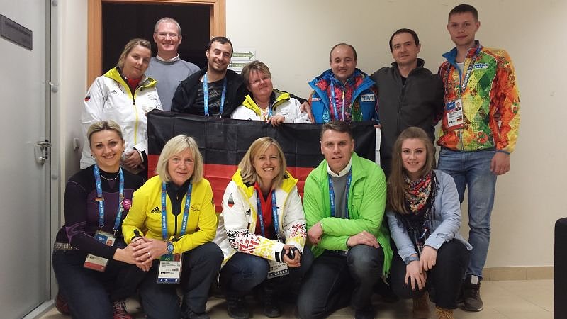 Große Ehe für die deutschen Volunteers, die vom Deutschen Olympischen Sportbund in Person von DOSB-Präsident Alfons Hörmann (gelbe Jacke) und Michael Vesper, Chef de Mission, (weiße Jacke/ganz links) zum Abschiedsessen eingeladen wurden.Sergej König ist zurück. Zurück aus Sotschi. In der Stadt am Schwarzen Meer war der 41-jährige Eichsfelder als Volunteer bei den Olympischen Winterspielen eingesetzt. Insgesamt sorgten 25.000 Freiwillige dafür, dass alles reibungslos über die Bühne ging.
