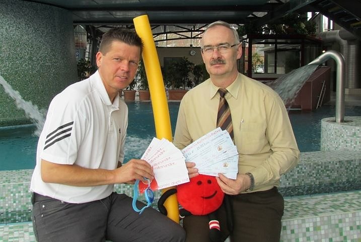 Schwimmen ist eine der gesündesten Fitnessmethoden. Darüber sind sich Jens Eisenschmidt, der Geschäftsführer des Badehauses und Bernd Brode, Mitarbeiter der Barmer in Nordhausen einig...
