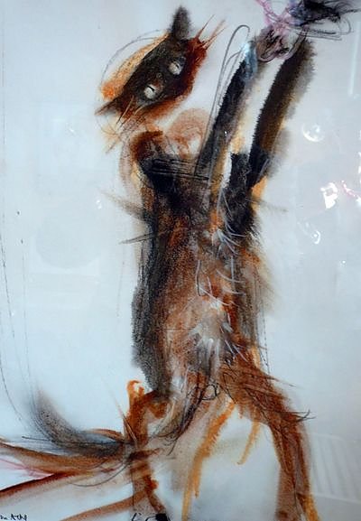 Kein Verweis auf das vietnamesische Jahr der Katze, kein Nachlassen von seinem Hang zu Hunden, hier vor allem den Doggen, keine Verweis auf die Ungebundenheit dieser schönen Tiere, sondern ganz einfach: Ich hab nun einmal eine Katze zu Hause, so Gerd Mackensen.
