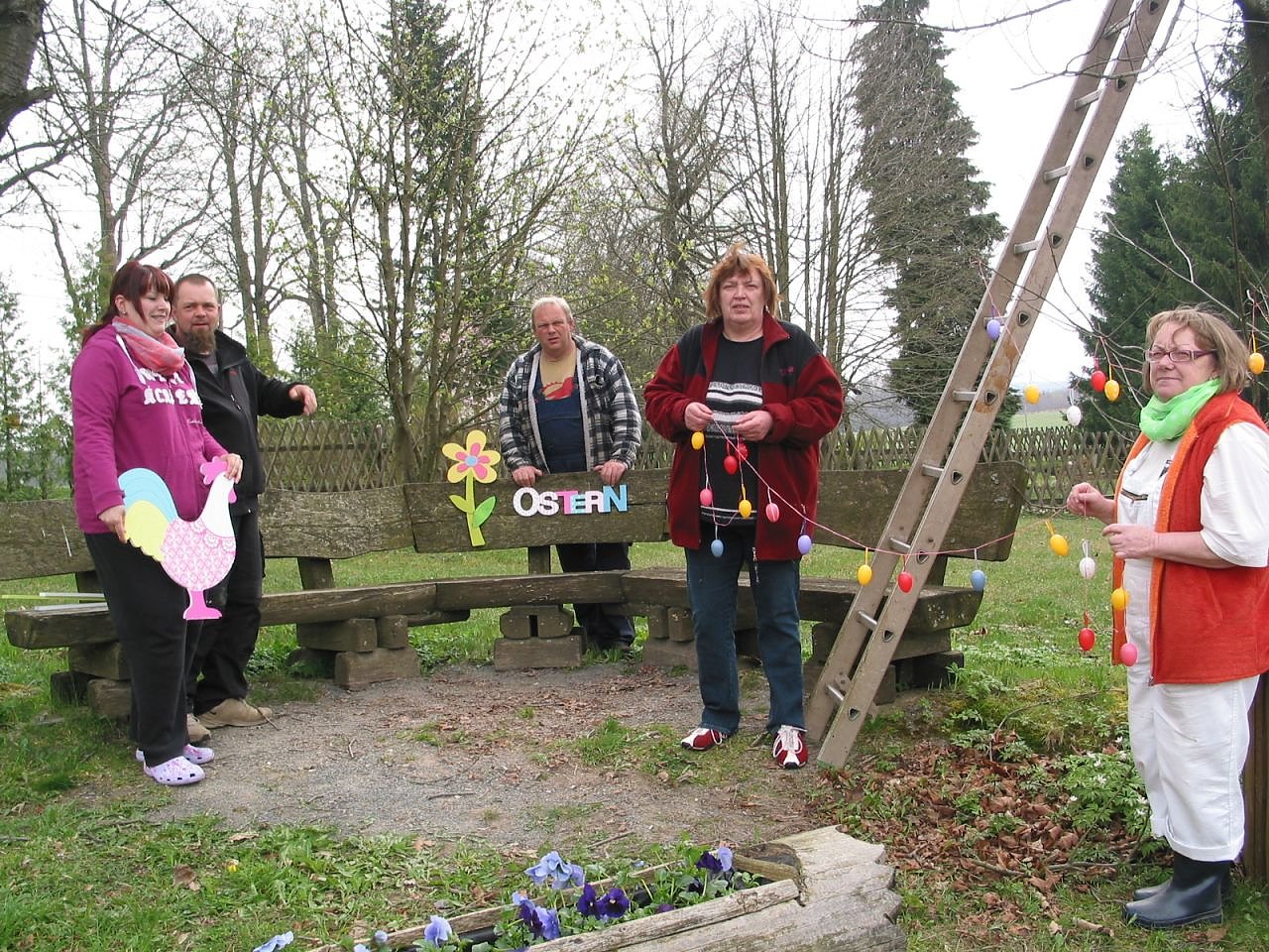 Die nebenstehende Sitzgruppe in der Dorfstraße wurde mit österlichen Figuren sehr dekorativ gestaltet. Die Kosten hierfür hat der Förderverein Sophienhof übernommen. Nun kann Ostern kommen. Alle Besucher und Gäste sind herzlich willkommen.