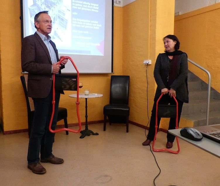 Am vergangenen Mittwoch konnte das zweite Projekt realisiert werden und so konnte der Vorsitzende des Kunsthaus Meyenburg MEYENBURG Fördervereins, Dr. Wolfgang R. Pientka dem Kunsthaus drei Klapphocker Lectus speziell für Museen entwickelte, ultraleichte Stühle, die beim Rundgang mitgenommen werden können und auf denen man entspannt längere Zeit vor einem Kunstwerk verweilen kann, übergeben.