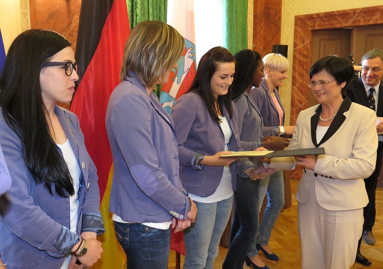 Mit der Veranstaltung im Barocksaal der Thüringer Staatskanzlei will die Regierungschefin die überragenden Leistungen der Sportlerinnen sowohl in dieser Saison als auch in den vergangenen Jahren ehren. Den Handballerinnen sei ein sportliches Bravourstück gelungen, erklärte Lieberknecht vorab.