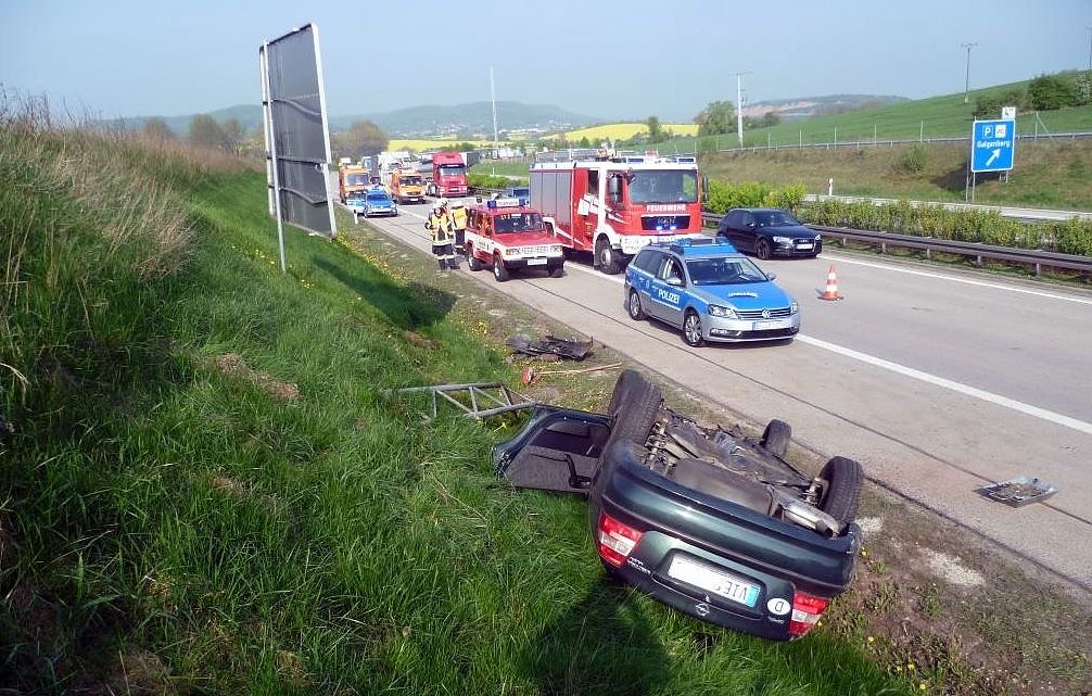 Aus noch ungeklärter Ursache erkennt der Fahrer einen vor ihm fahrenden Lkw zu spät. Er versucht dem Lkw noch auszuweichen, fährt aber trotzdem mit seinem Opel unter die rechte hintere Seite des Lkw-Anhängers. Daraufhin kommt der Pkw nach rechts von der Fahrbahn ab, fährt gegen ein Verkehrszeichen und kommt auf dem Dach neben der Fahrbahn zum Liegen. Der Fahrer und seine 19-jährige Beifahrerin werden schwer verletzt ins Südharz-Klinikum gebracht. Die A 38 war für 30 Minuten voll gesperrt.