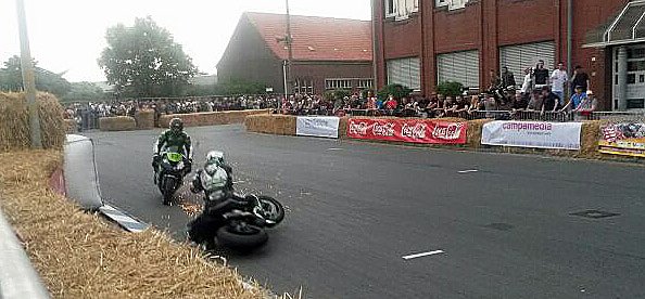 Als er sich diese am Ende von Runde 3 zurecht legte, um sich am Ende der Start-Ziel-Geraden vorbeizubremsen, machte der vor ihm fahrende Simon Lohmann einen Fehler und kam zu Sturz. Seine Z800 prallte in die Streckenbegrenzung aus Strohballen und wurde wieder auf die Strecke geschleudert, wobei die Maschine das Vorderrad von Marcus traf und dieser zu Sturz kam. Zum Glück blieben beide Fahrer unverletzt.
