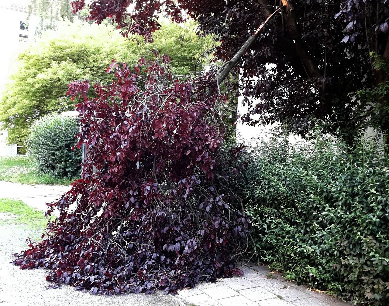 mit demselben handy, mit dem umständlich ein foto gemacht wird, um einen kommentar bei der NNZ zu posten ("seht alle her!"), hätte der oder die fotografIn genausogut das ordnungsamt benachrichtigen können. "hallo, da und dort liegt schon seit tagen ein abgerissener ast".