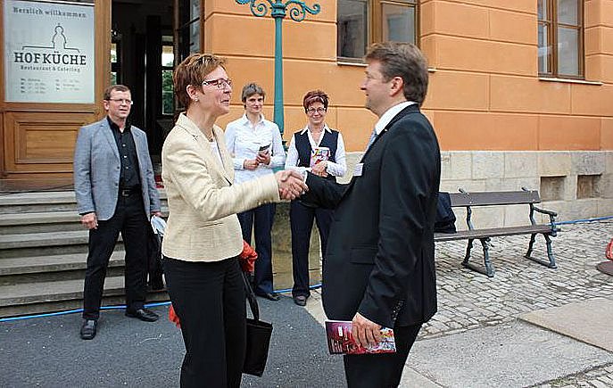 Prominentester Gast in diesem Jahr Thüringens Sozialministerin Heike Taubert (SPD), die ja im Prinzip ja auch schon "auf Wahlkampftour" ist, hier begrüßt vom Intendanten Lars Tietje.