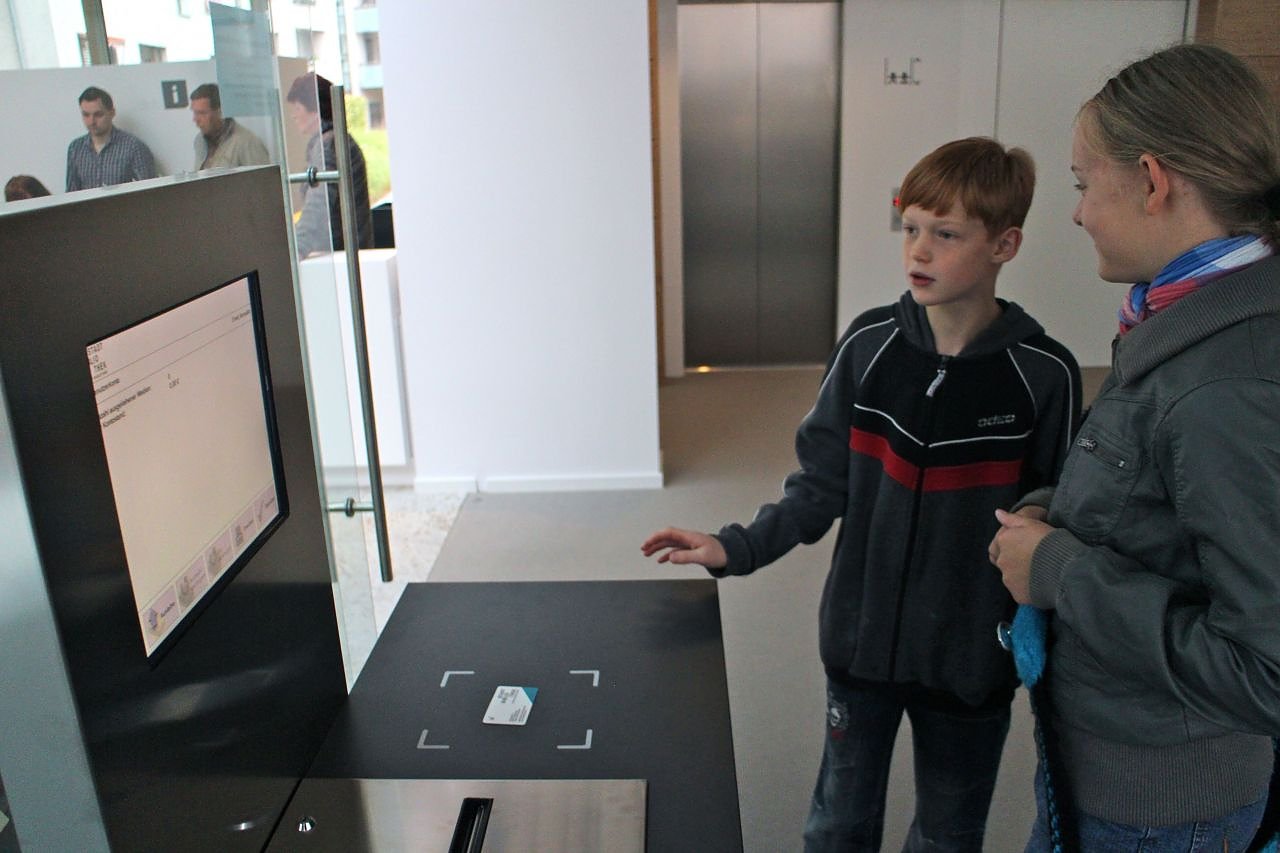 Denn einfach mit dem Buch hinausspazieren geht nicht. Ähnlich wie im Kaufhaus würde der Alarm losgehen, wenn man versehntlich vergisst, das gewünschte Werk auch zu verbuchen, da sämtliche Medien mit sogenannten RFID-Chips ausgestattet wurden, die alle relevanten Informationen zum Buch an die entsprechenden Geräte im Haus senden. Das macht die Ausleihe zu einer Sache weniger Sekunden. Erst Nutzerausweis und dann die Bücher auf den "Selbstverbucher" gelegt, ein Fingertipp auf den Bildschirm, fertig.