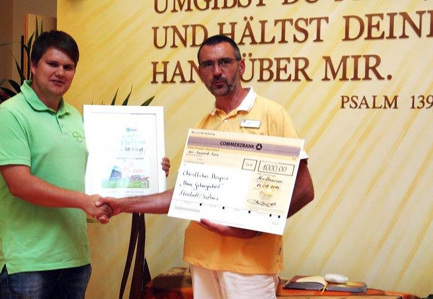 Wir als Pflegedienst rundeten den Betrag nochmal ein wenig auf und übergaben Mitte August den Check mit einer Spende in Höhe von 1.000 Euro an den Hospizleiter Herrn Wisch.