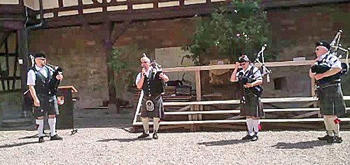 Seit einigen Jahren üben jeden Dienstag in der Kreisvolkshochschule in Sangerhausen die schottlandbegeisterten Dudelsackspiele unter der Leitung von Karsten Reichelt. Nachdem nun schon einige typische schottische und irische Lieder und Märsche zu unserem Repertoire gehören, gründeten wir vor knapp einem Jahr unsere Dudelsackband Barbarossa Pipes & Drums.